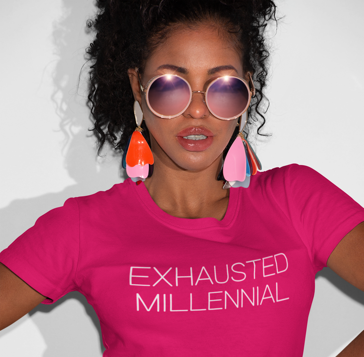 Exhausted Millennial Graphic Tee Funny Gift for Tired Adults and Coffee Lovers